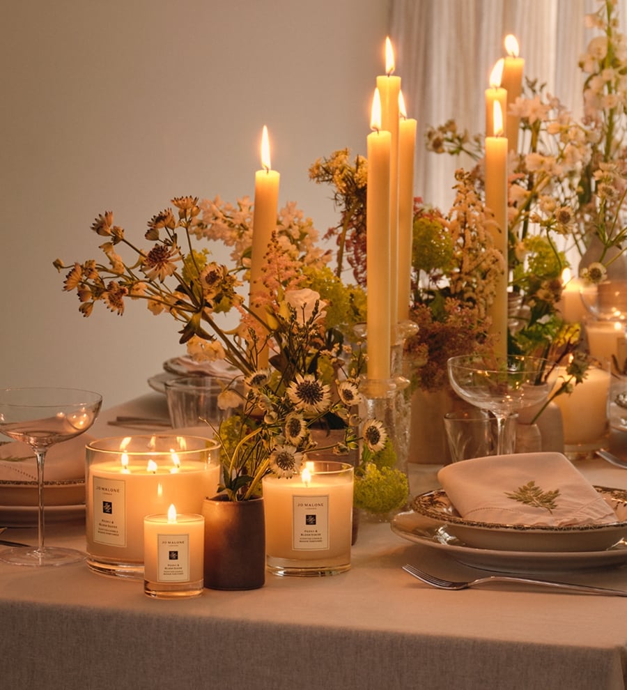Emma reveló los nombres: English Pear & Sweet Pea y Peony & Blush Suede. Luego, un masaje de manos y brazos con el Peony & Blush Suede Body & Hand Wash y Hand Cream. “Esto ayuda a descubrir distintas formas de usar una fragancia, creando capas que prolongan su duración”, explicó. “El día de tu boda, comienza la preparación con Peony & Blush Suede Bath Oil, que aportará calma y la primera capa de aroma. Después, aplica la rica crema corporal para una piel luminosa y flexible, asegurando que tu fragancia perdure. El toque final: un rocío de English Pear & Sweet Pea sobre el vestido y el velo, creando una combinación única”. También planeo usar velas de Peony & Blush Suede en todo el lugar; nada añade tanto a la atmósfera romántica como el resplandor ámbar de la luz de las velas. “Agrupar velas en distintas alturas da un impacto visual”, añadió Emma.