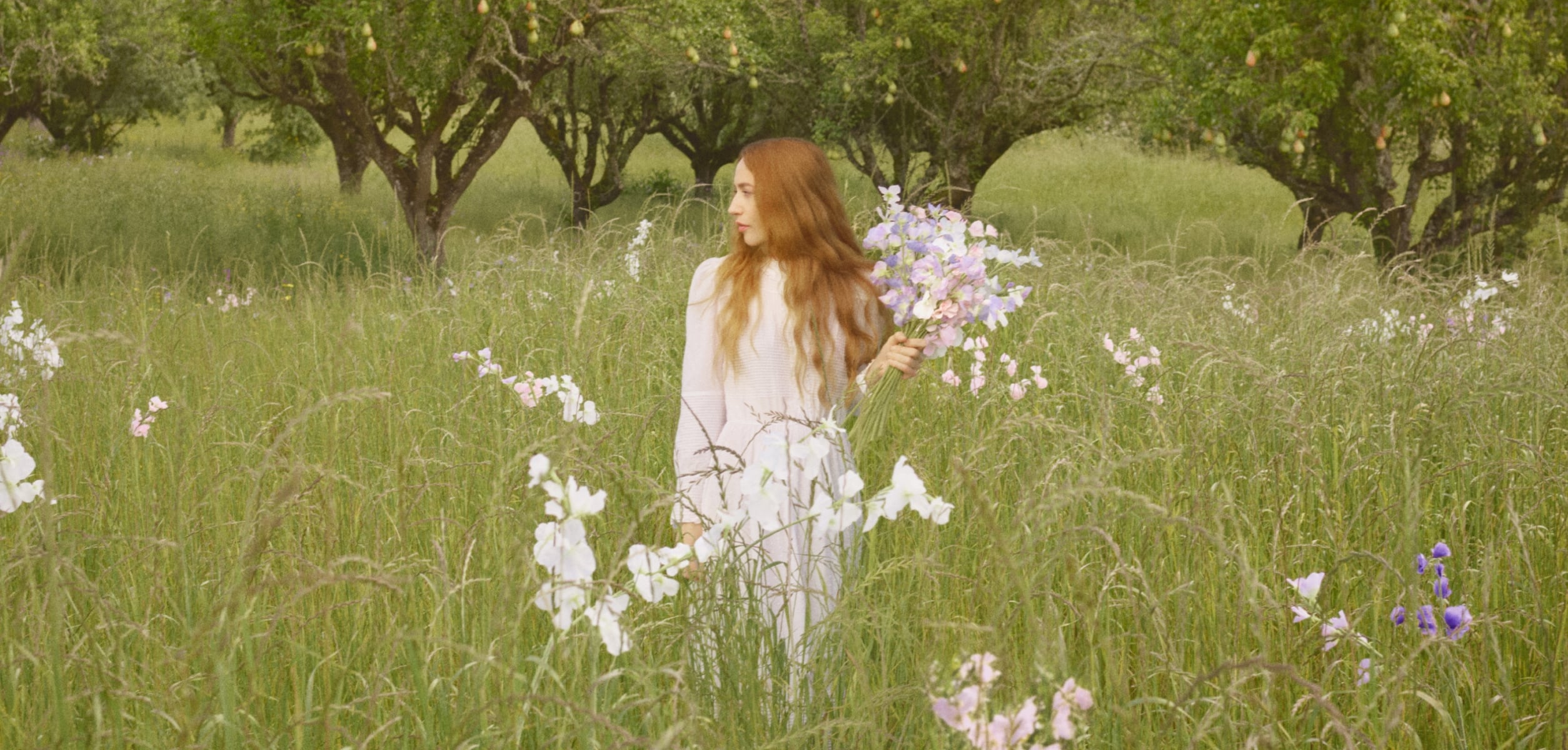 El aroma está, inevitablemente, relacionado con los recuerdos y, para Georgia May, también con los rituales. “Es una parte muy importante para sentir que estás lista para salir”, afirma. “También pienso en las fragancias que tenía mi madre o en cómo huelen mis amigas. Hueles algo y te transporta a un lugar o a un momento”. Para Lizzy, la resonancia es literal: “Me encantan los guisantes de olor. Mi madre los cultiva y, cuando vamos a su casa, pone pequeños ramos por todas partes”. También los relaciona con su hermana: “El olor de los guisantes de olor me recuerda a Georgia May porque es la flor favorita de nuestra madre y hemos pasado mucho tiempo rodeadas de ellos”. Para Céline, English Pear & Sweet Pea era el segundo capítulo natural de la colección English Pear. “Queríamos reinterpretar la pera a través de otra flor. Los guisantes de olor son alegres y pastel, y las fresias son elegantes y largas. Para mí, las dos flores eran como hermanas”.